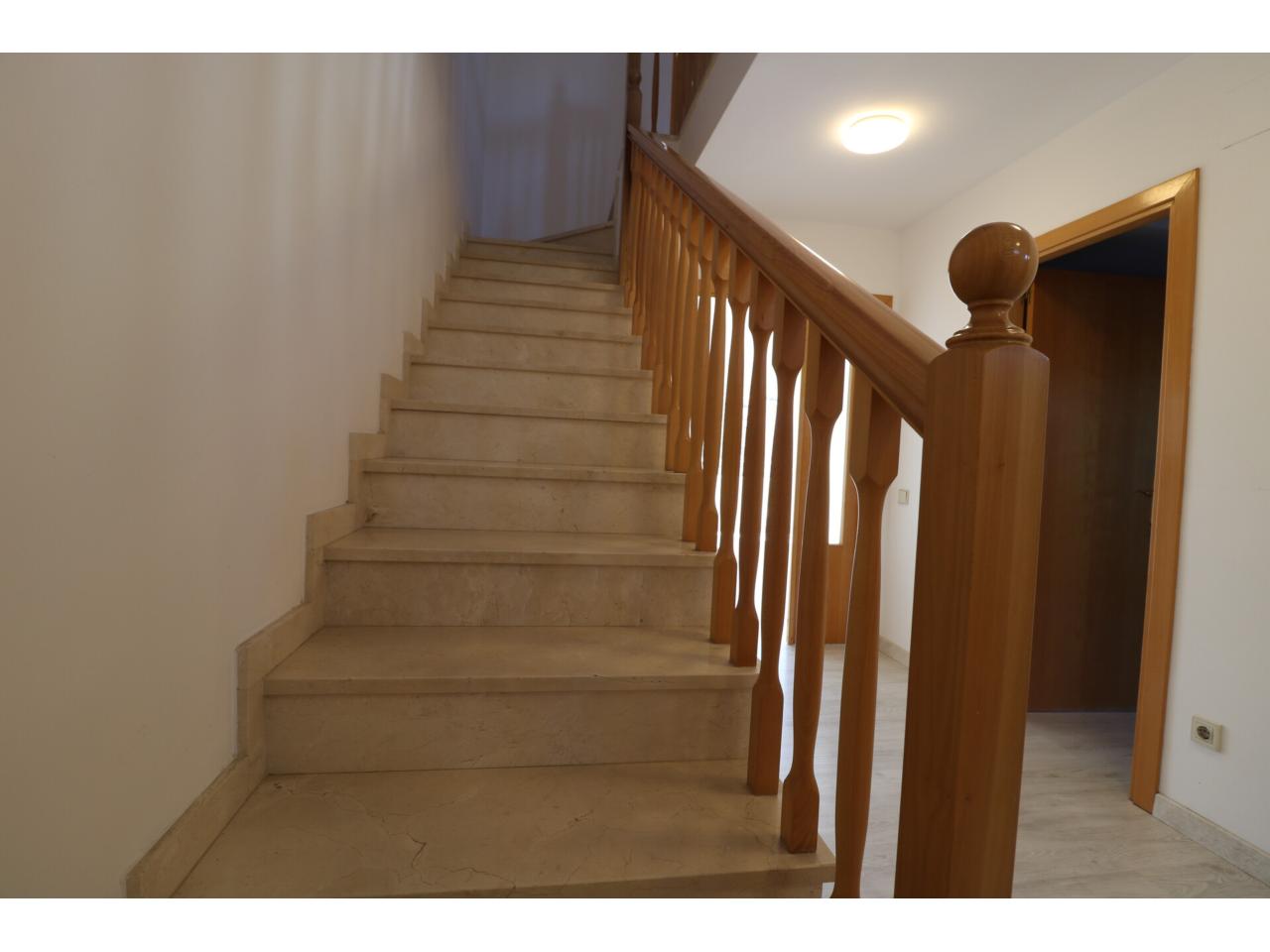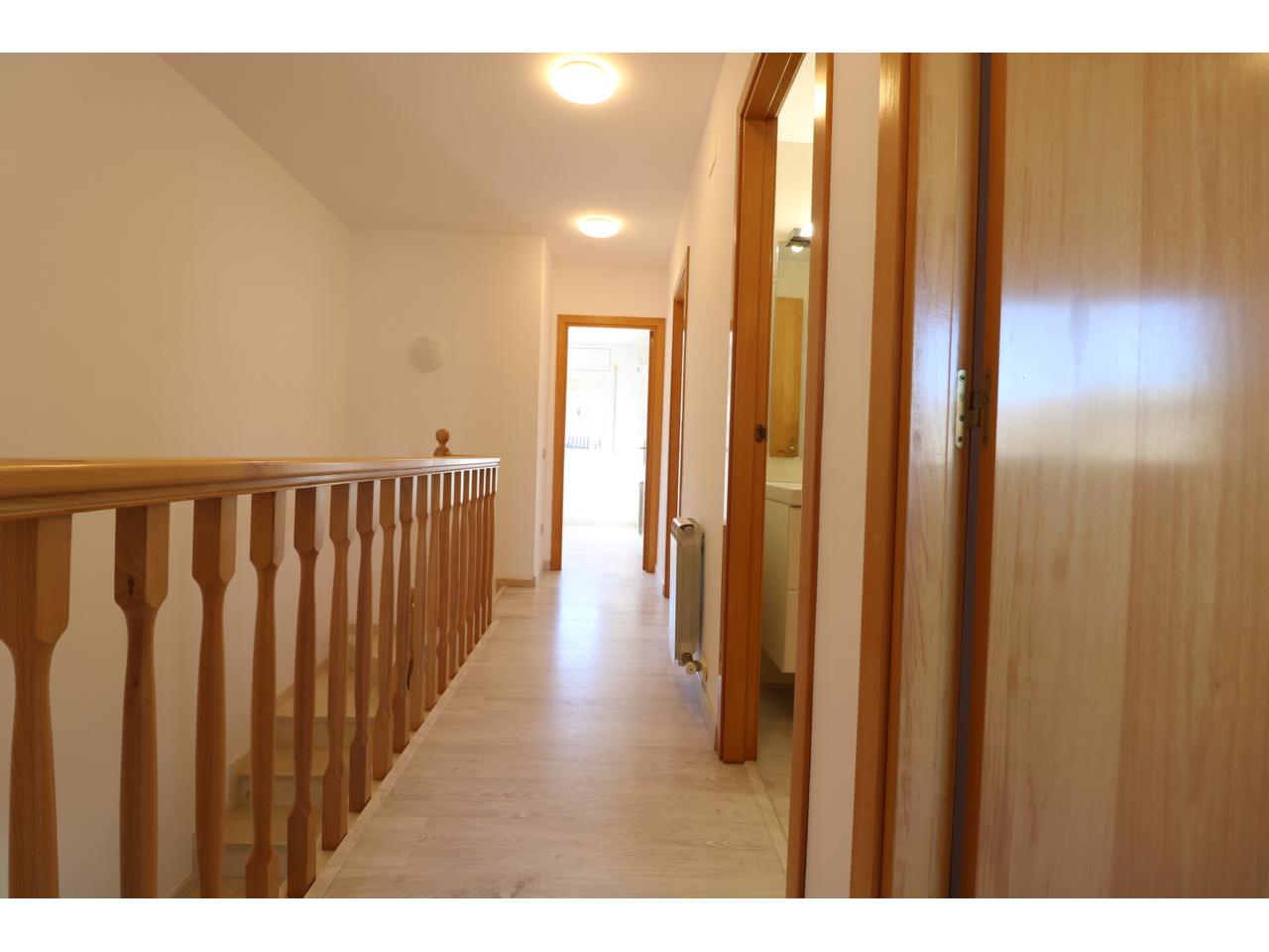 Tras subir un pequeño tramo de escaleras accedemos a la entrada de la vivienda, en el recibidor se encuentra un aseo de cortesía con luz y ventilación natural, pocos metros más adelante, se ubica la cocina office con acceso directo a un lavadero exterior, siguiendo por el pasillo encontramos el gran salón comedor con salida a un soleado balcón con orientación sur y vistas a Collserola. Desde el recibidor parten unas bonitas escaleras que nos dan acceso a la planta superior, donde se ubican un dormitorio tipo suite, uno doble y dos individuales, adicionalmente esta planta nos ofrece un segundo baño con plato de ducha.